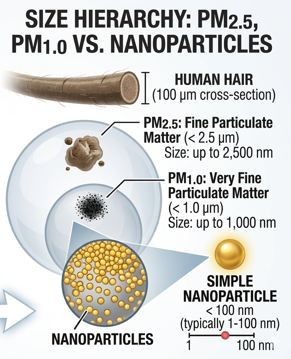 Ultrafine particles (UFPs) are smaller than 100 nanometers (nm). While they contribute almost nothing to the total “mass” of a sample, they often represent the vast majority of the “count.”